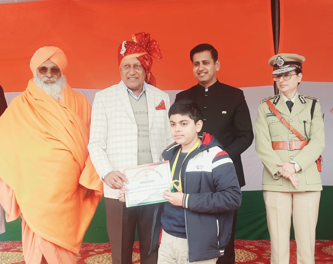 जालंधर कैंट (राहुल अग्रवाल) :- जालंधर जिले में गणतंत्रता दिवस के शुभ अवसर पर स्थानीय गुरु गोबिंद सिंह स्टेडियम में जिला स्तरीय समारोह आयोजित किया गया I जिसमें मुख्य अतिथि के रूप में मंत्री बरिंदर गोयल पहुंचे। गणतंत्र दिवस पर जालंधर का गौरव बढ़ाया शतरंज खिलाड़ी श्रेयांश जैन ने 77वें गणतंत्र दिवस के पावन अवसर पर लाल कुर्ती बाज़ार, जालंधर कैंट निवासी अंतरराष्ट्रीय शतरंज खिलाड़ी श्रेयांश जैन को उनकी उत्कृष्ट खेल उपलब्धियों के लिए सम्मानित किया गया।जालंधर में आयोजित गणतंत्र दिवस समारोह के दौरान उन्हें कैबिनेट मंत्री बरिंदर कुमार गोयल, डिप्टी कमिश्नर हिमांशु अग्रवाल, पुलिस कमिश्नर धनप्रीत कौर, सांसद संत बलबीर सिंह सीचेवाल एवं जिला प्रशासन, जालंधर द्वारा विशेष रूप से सम्मानित किया गया। श्रेयांश जैन की यह उपलब्धि न केवल उनके परिवार बल्कि पूरे जालंधर , समस्त जैन समाज एवं पंजाब के लिए गर्व का विषय है। उनकी मेहनत, लगन और अनुशासन आज नई पीढ़ी के खिलाड़ियों के लिए प्रेरणा बन रहे हैं। हम कामना करते हैं कि श्रेयांश जैन भविष्य में और ऊँचाइयाँ छुएँ तथा पंजाब के पहले ग्रैंडमास्टर बनकर प्रदेश व देश का नाम अंतरराष्ट्रीय स्तर पर रोशन करें। जालंधर को आप पर गर्व है।